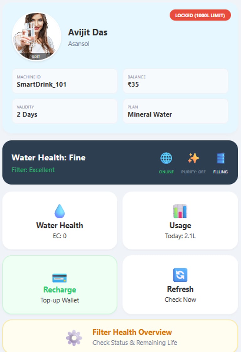 Recharge your water just like your mobile phone. Simple, instant, and completely under your control.